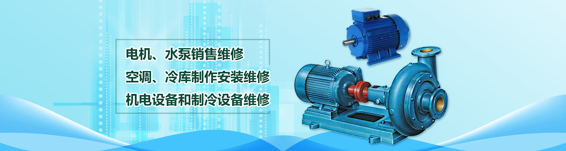 關鍵詞: 機電設備和制冷設備維修 空調.冷庫制作安裝維修 電機.水泵銷售維修